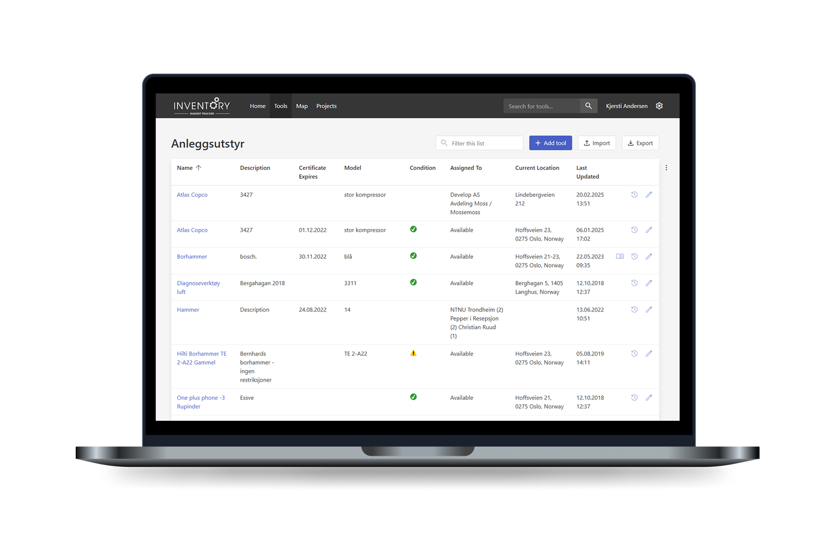 Full kontroll på verktøy/utstyr i kart